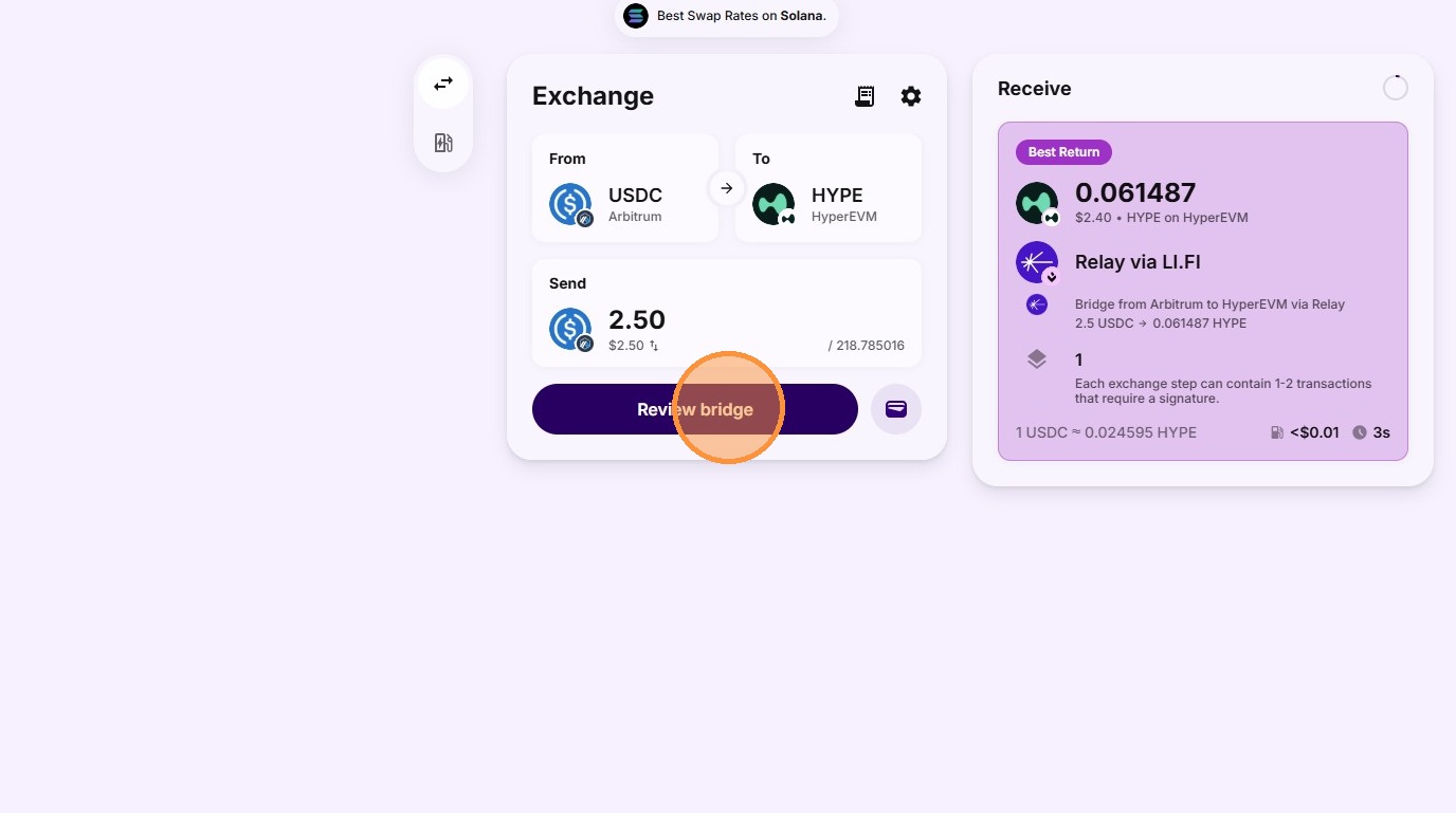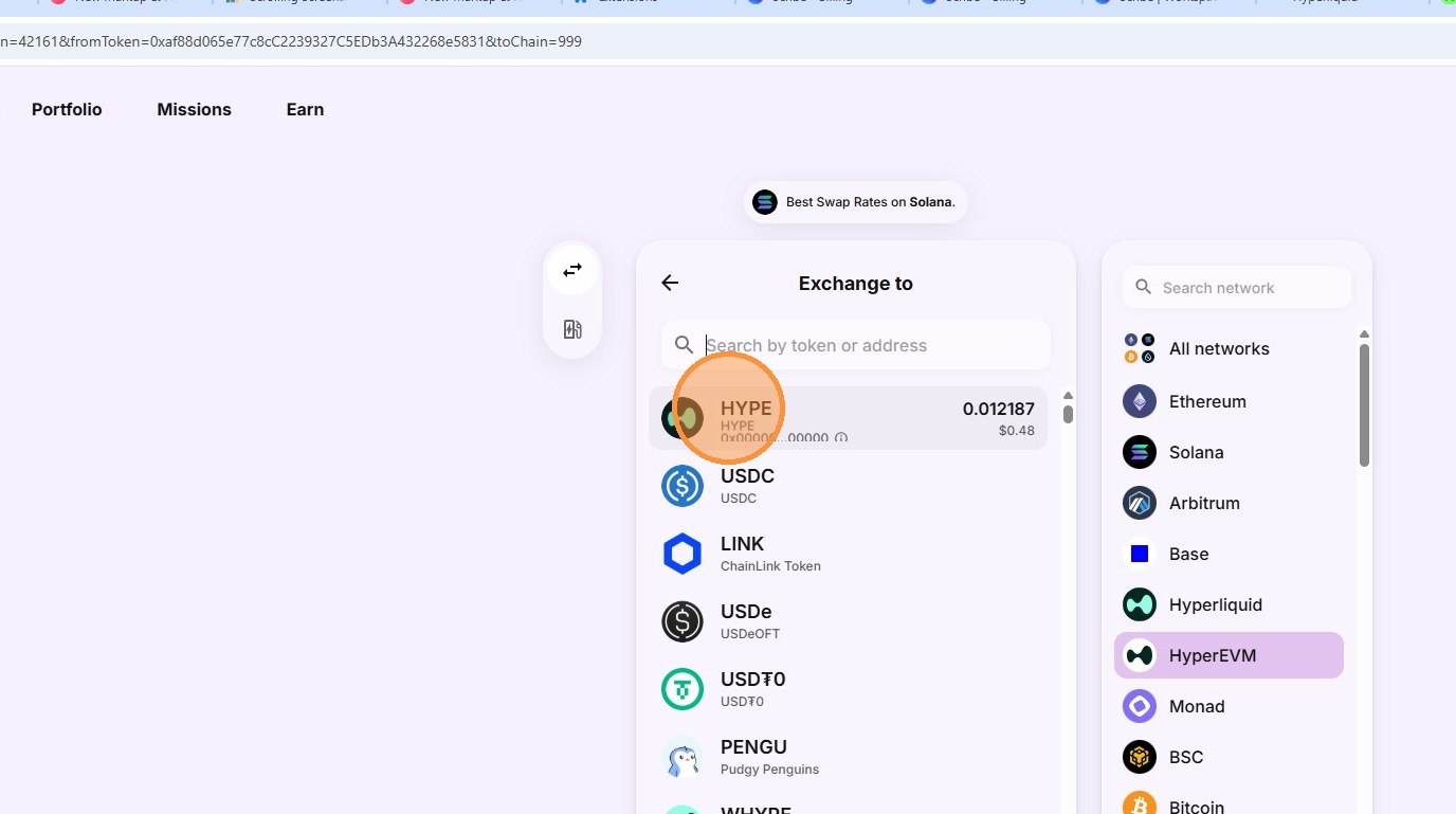 6. Select what you're exchanging to and so we need HYPE on HyperEVM.