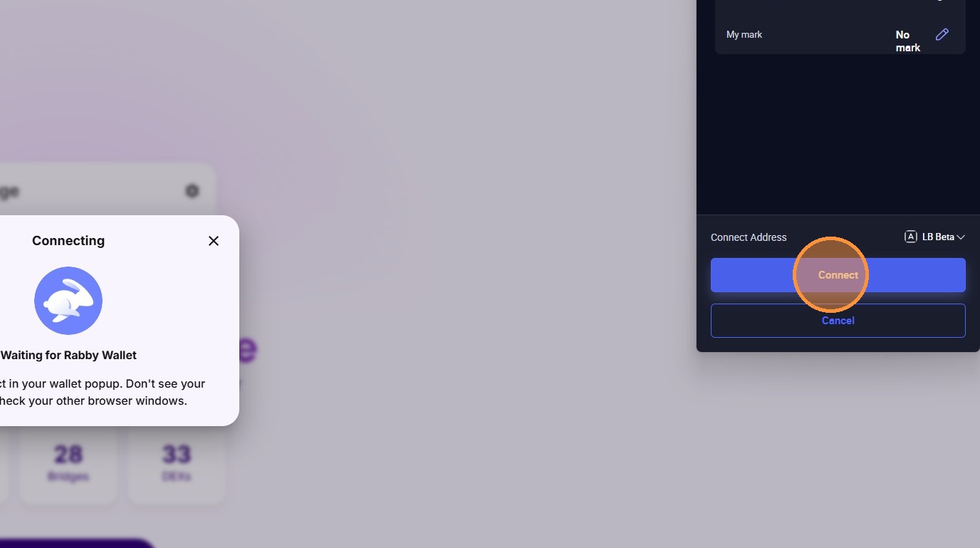 3. In your Rabby wallet, click connect when prompted.